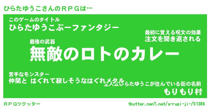 | 伝説のあだ名 | 『封印されし竜騎士ひらたゆうこ』 |