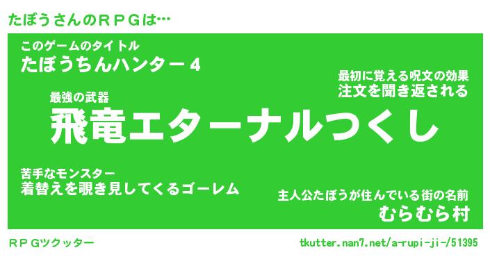 | ヒーロー風カッコイイあだ名 | 『スーパータボウ』『ウルトラたぼうマン』 |