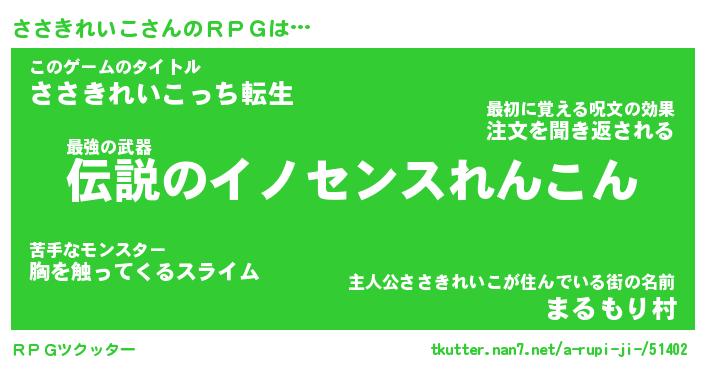 | 女子向けラノベタイトル風あだ名 | 『ささきれいこ姫と円卓の騎士』 |