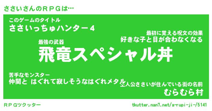 | 伝説のあだ名 | 『封印されし竜騎士ささい』 |
