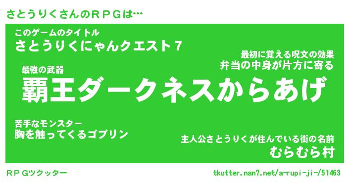 | 男性向けラノベタイトル風あだ名 | 『サトウリクアートオンライン』 |