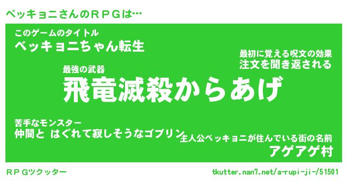| 男性向けラノベタイトル風あだ名 | 『ベッキョニアートオンライン』 |