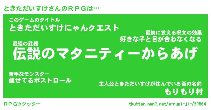 | 男性向けラノベタイトル風あだ名 | 『ときただいすけの憂鬱』 |