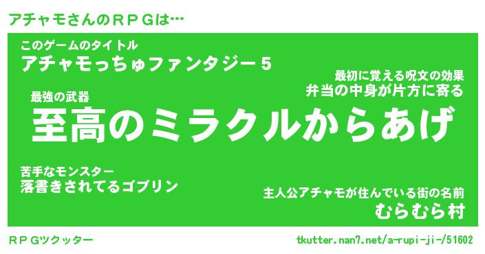 | ファンタジー風あだ名 | 『アチフェル』『エターナルアチャモー』 |