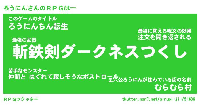 | 男性向けラノベタイトル風あだ名 | 『ろうにんの憂鬱』 |
