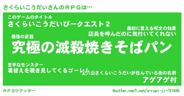 | 意味不明あだ名 | 『ペロリンさくらいこうだい』 |