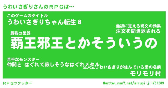 | 胡散臭い通販商品みたいなあだ名 | 『億万長者になれる水晶球…その名も「うわいさぎり」』 |