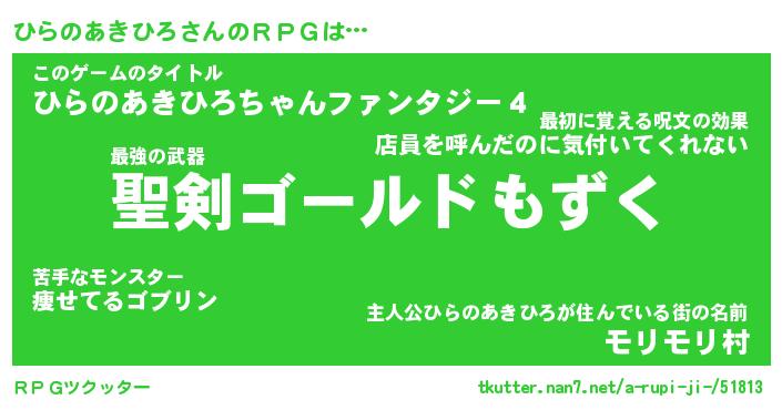 | 伝説のあだ名 | 『伝説のスナイパーひらのあきひろ』 |