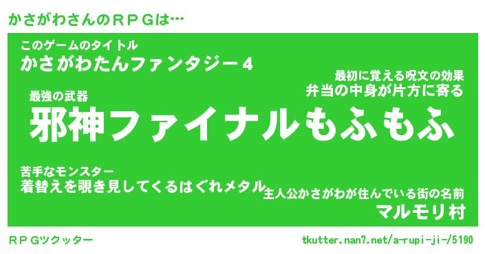 | ファンタジー風あだ名 | 『カサフェル』『エターナルカサガワー』 |