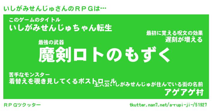 | 胡散臭い通販商品みたいなあだ名 | 『必ず成功するブレスレット…その名も「いしがみせんじゅ」』 |