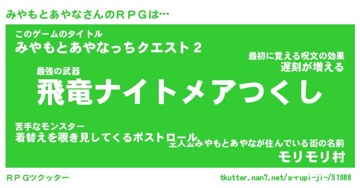 | 伝説のあだ名 | 『封印されしスナイパーみやもとあやな』 |