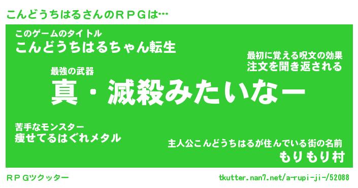 | 男性向けラノベタイトル風あだ名 | 『コンドウチハルアートオンライン』 |