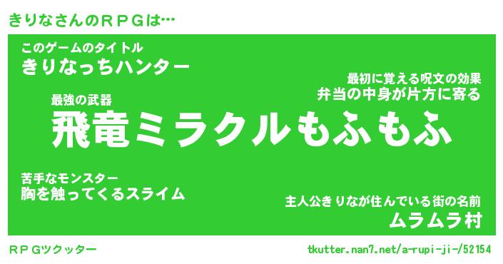 | ファンタジー風あだ名 | 『キリフェル』『エターナルキリナー』 |
