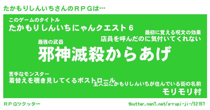 | 伝説のあだ名 | 『封印されしスナイパーたかもりしんいち』 |