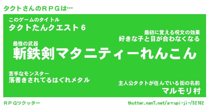 | 2回繰り返すあだ名 | 『タクタク』『タタクク』『のろのろ』 |