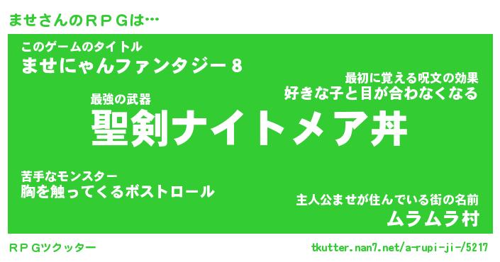 | 胡散臭い通販商品みたいなあだ名 | 『必ず成功する霊験あらたかなお札…その名も「ませ」』 |