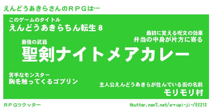 | 胡散臭い通販商品みたいなあだ名 | 『必ず成功する霊験あらたかなお札…その名も「えんどうあきら」』 |