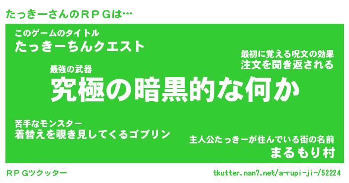 | 男性向けラノベタイトル風あだ名 | 『タッキーアートオンライン』 |