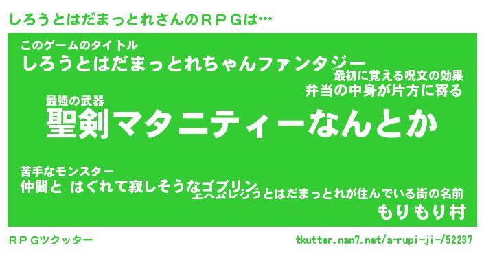 | ヘコむあだ名 | 『しろっふぃ~』『つくし』『しろお』 |