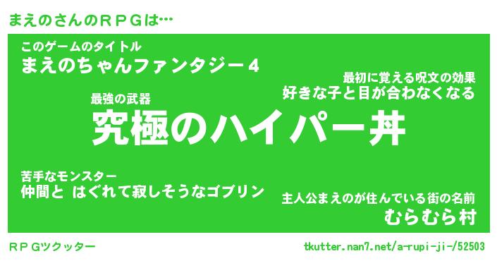 | ファンタジー風あだ名 | 『マエフェル』『エターナルマエノー』 |
