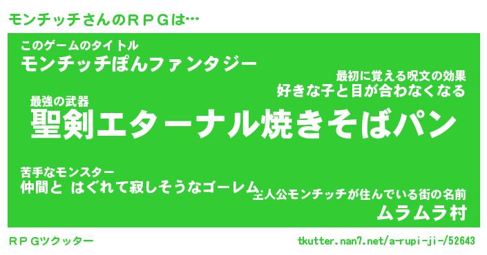 | ファンタジー風あだ名 | 『モンフェル』『エターナルモンチッチー』 |