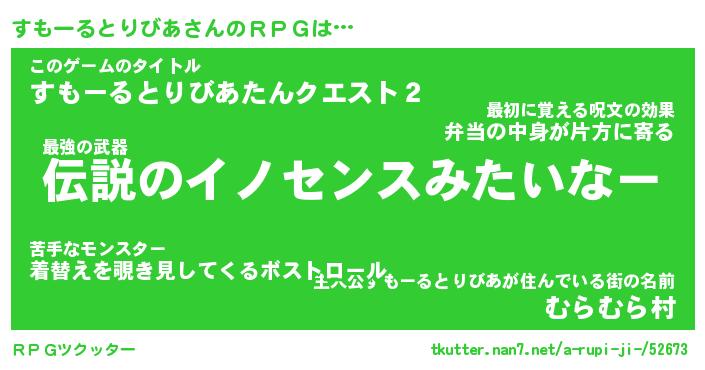 | 胡散臭い通販商品みたいなあだ名 | 『モテモテ間違いなし霊験あらたかなお札…その名も「すもーるとりびあ」』 |