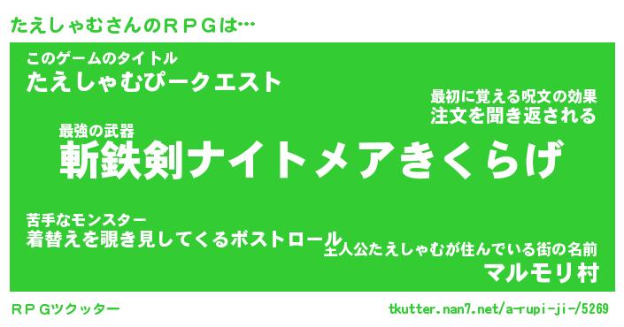 | 伝説のあだ名 | 『伝説のスナイパーたえしゃむ』 |