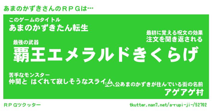 | 伝説のあだ名 | 『封印されしスナイパーあまのかずき』 |