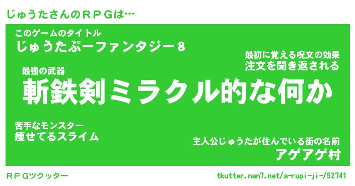 | 男性向けラノベタイトル風あだ名 | 『じゅうたの憂鬱』 |