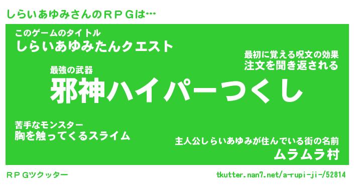 | 胡散臭い通販商品みたいなあだ名 | 『億万長者になれるブレスレット…その名も「しらいあゆみ」』 |