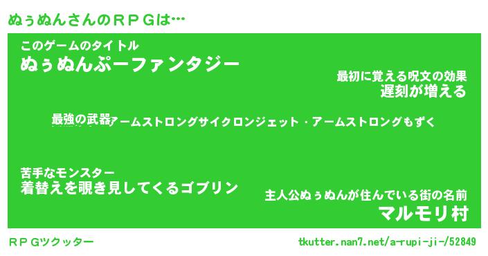 | ファンタジー風あだ名 | 『ヌゥフェル』『エターナルヌゥヌンー』 |