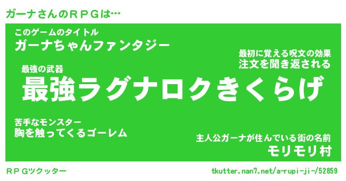 | 男性向けラノベタイトル風あだ名 | 『ガーナアートオンライン』 |