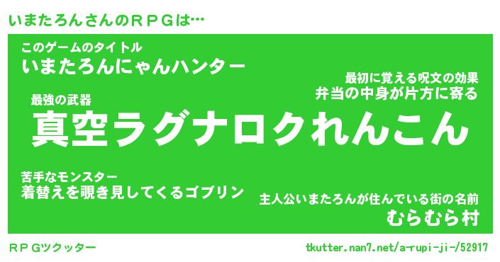 | 伝説のあだ名 | 『封印されし竜騎士いまたろん』 |