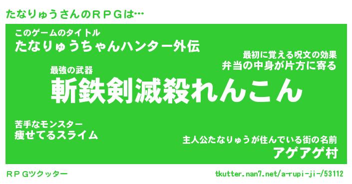 | 男性向けラノベタイトル風あだ名 | 『たなりゅうの憂鬱』 |