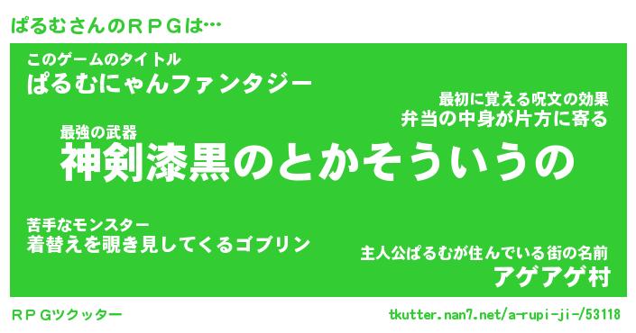 | 男性向けラノベタイトル風あだ名 | 『ぱるむの憂鬱』 |