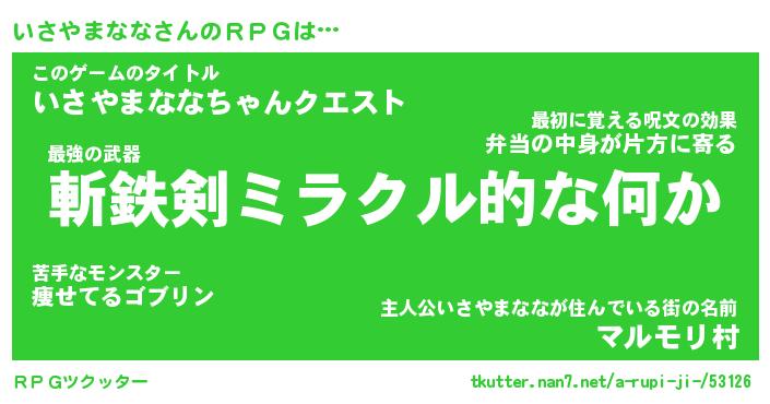 | 胡散臭い通販商品みたいなあだ名 | 『必ず成功するブレスレット…その名も「いさやまなな」』 |