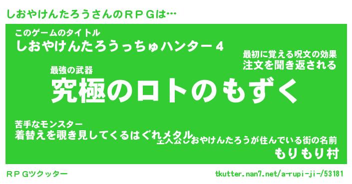 | 伝説のあだ名 | 『不死鳥の竜騎士しおやけんたろう』 |
