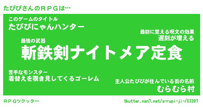| 男性向けラノベタイトル風あだ名 | 『たぴぴの憂鬱』 |
