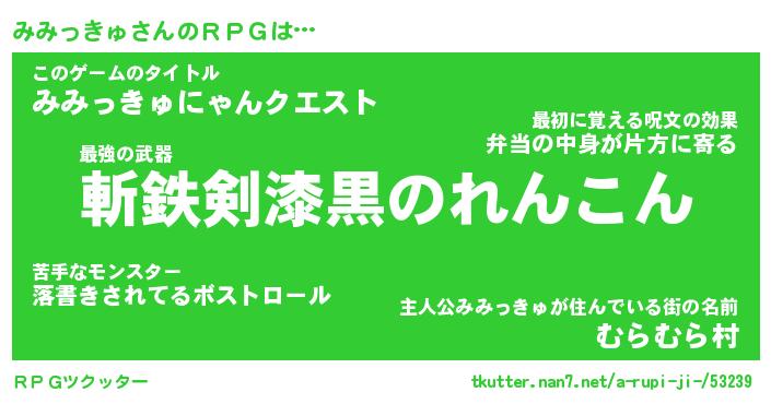 | 男性向けラノベタイトル風あだ名 | 『みみっきゅの憂鬱』 |