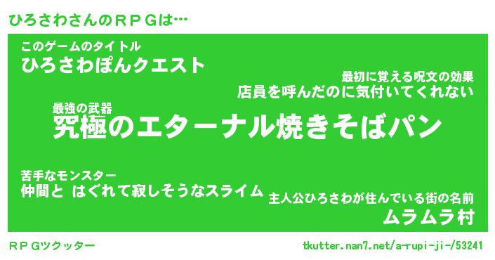 | ヒーロー風カッコイイあだ名 | 『スーパーヒロサワ』『天弓騎士ヒロ』 |