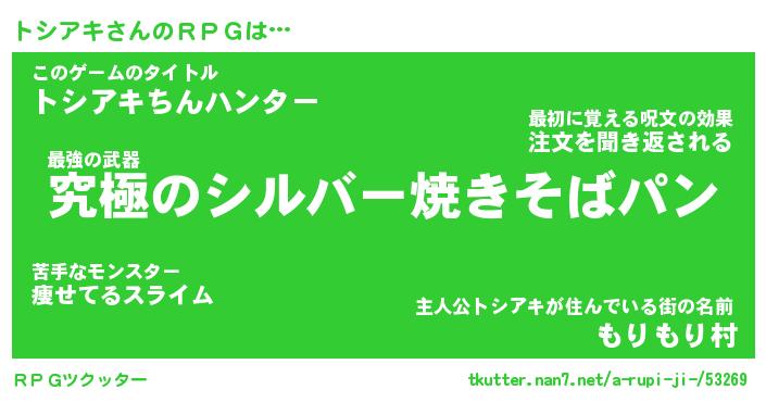 | ファンタジー風あだ名 | 『トシフェル』『エターナルトシアキー』 |