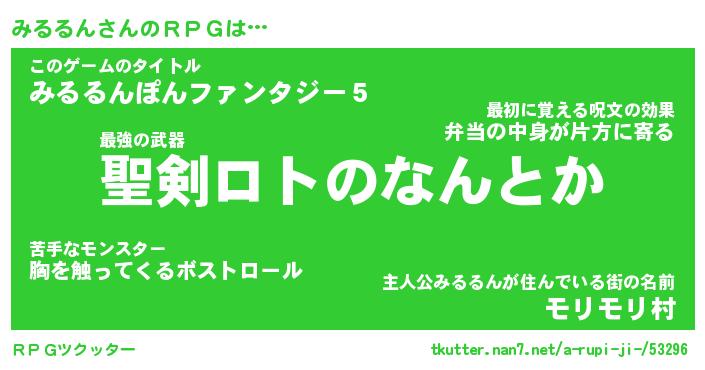 | 男性向けラノベタイトル風あだ名 | 『みるるんの憂鬱』 |