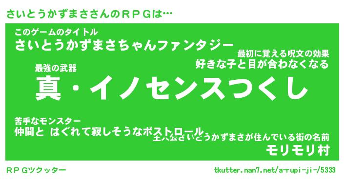 | ヒーロー風カッコイイあだ名 | 『スーパーサイトウカズマサ』 |