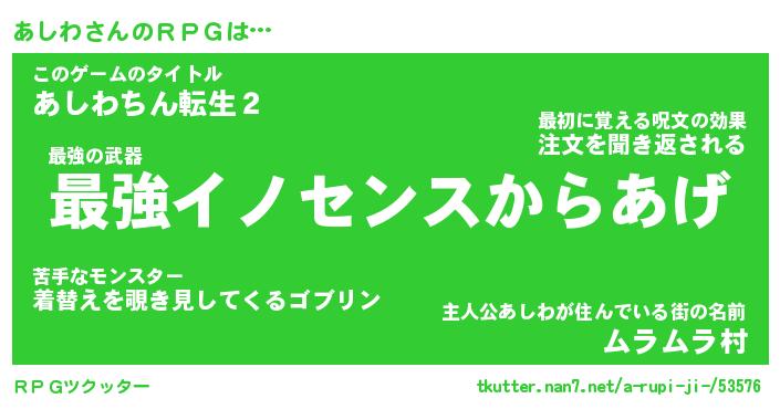 | 男性向けラノベタイトル風あだ名 | 『アシワアートオンライン』 |