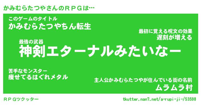 | 胡散臭い通販商品みたいなあだ名 | 『モテモテ間違いなし水晶球…その名も「かみむらたつや」』 |