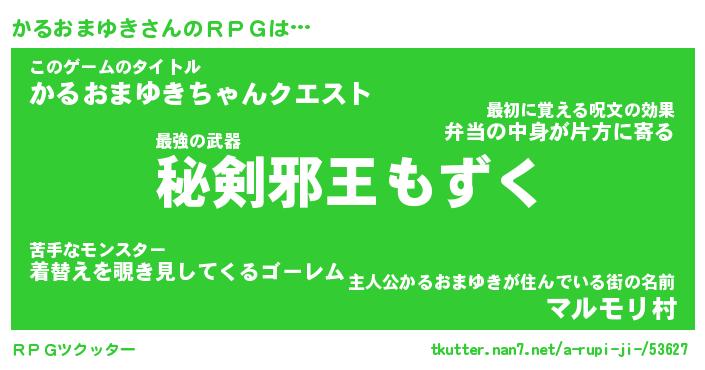 | 男性向けラノベタイトル風あだ名 | 『かるおまゆきの憂鬱』 |