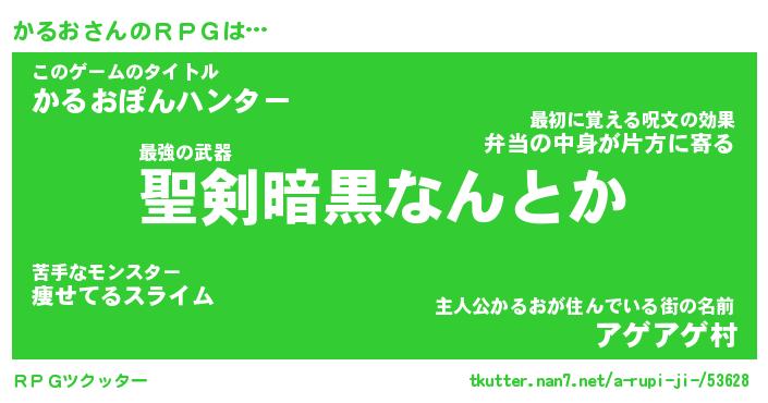 | 男性向けラノベタイトル風あだ名 | 『かるおの憂鬱』 |