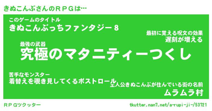 | 男性向けラノベタイトル風あだ名 | 『きぬこんぶの憂鬱』 |