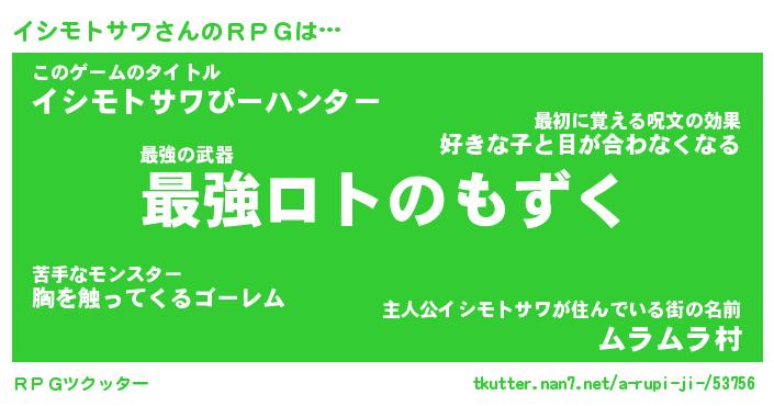 | ヒーロー風カッコイイあだ名 | 『スーパーイシモトサワ』『幻影騎士イシ』 |