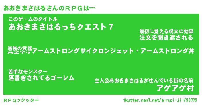| 伝説のあだ名 | 『封印されし竜騎士あおきまさはる』 |
